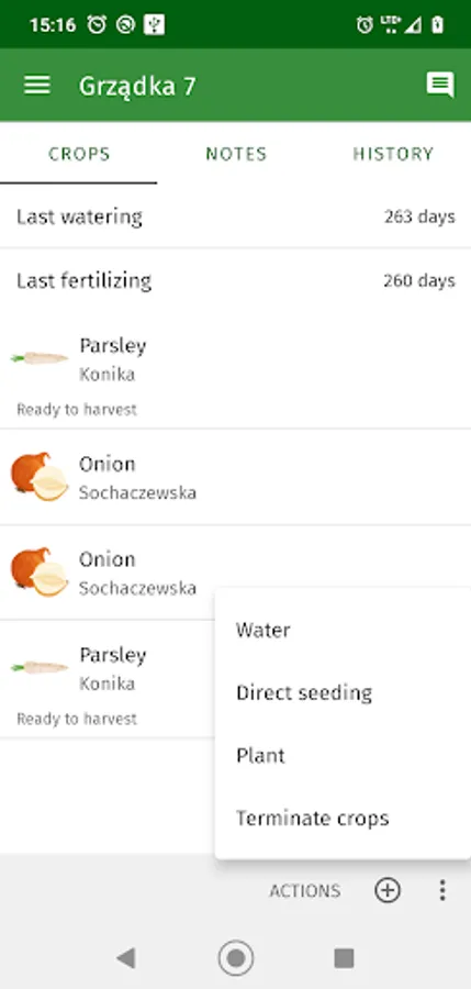 You can easily add reminders about watering, fertilizing, etc. and you see all the work done in the garden so far. Done tasks can be marked as notes (notebook).
