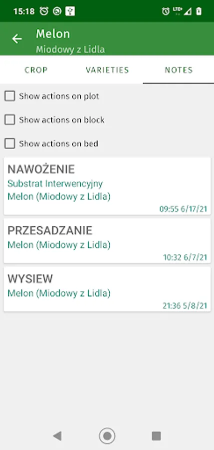 With this gardener's calendar app you will easily track information about activities you did on given crop, garden bed, block or the whole plot.