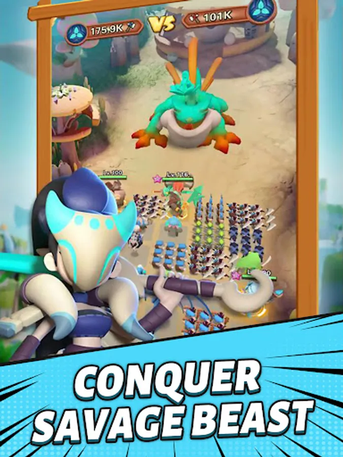 4 different types, and 6 different formations for you to choose from! Plan your lineups, take advantage of the counter system, and pair your troops with the right Heroes! Perfect your strategy to defeat your enemies!