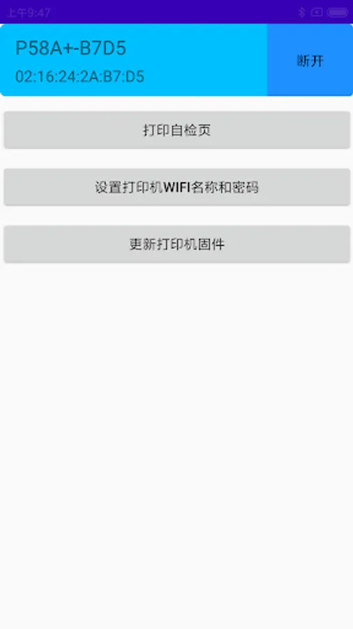 3 After the connection is successful, you can perform testing and settings, including printing a self-test page, setting in WiFi, and updating the firmware