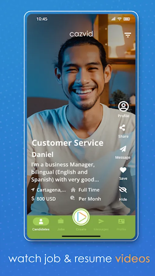 CazVid provides you that opportunity! Quickly and easily watch available job posts. See a job you like? It only takes 30 seconds to record a free video resume right in the app. Introduce yourself and tell the employer directly why you are the perfect candidate for the job. No more getting lost in a faceless sea of resumes. Just click “contact me” and message them directly!