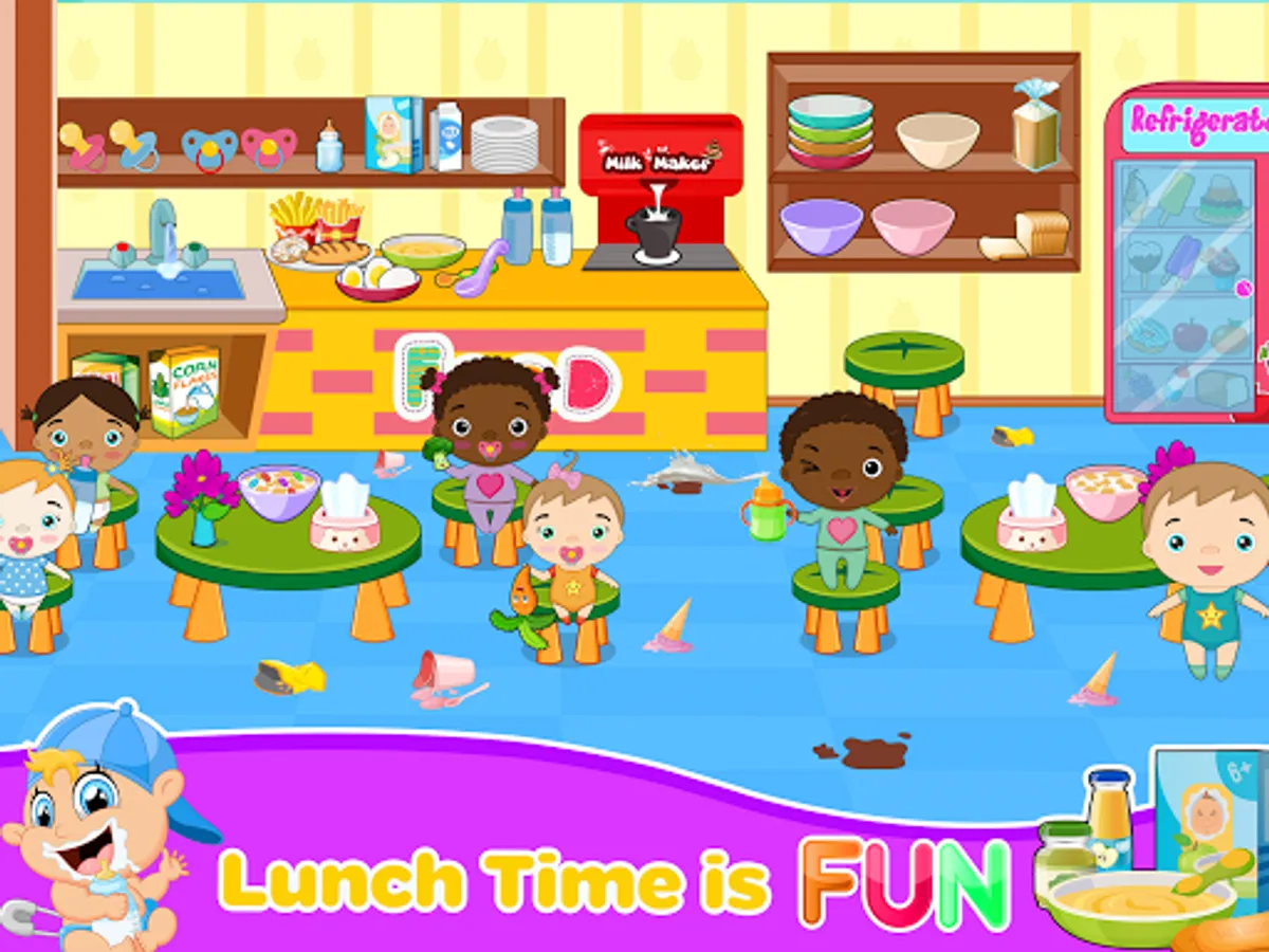 When children feel hungry. Go to the kitchen room of the baby nursery games and make their favorite food. In this toon town daycare center you can even get the kids busy to play with lots of exciting toys in the playroom.
