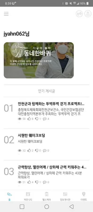 We aim to create a healthy Chungcheongbuk-do (Jincheon-gun) by providing opportunities for free activities to local residents' health-related meetings and clubs, business opportunities to small business owners related to physical activities, and opportunities to communicate with residents to related organizations.