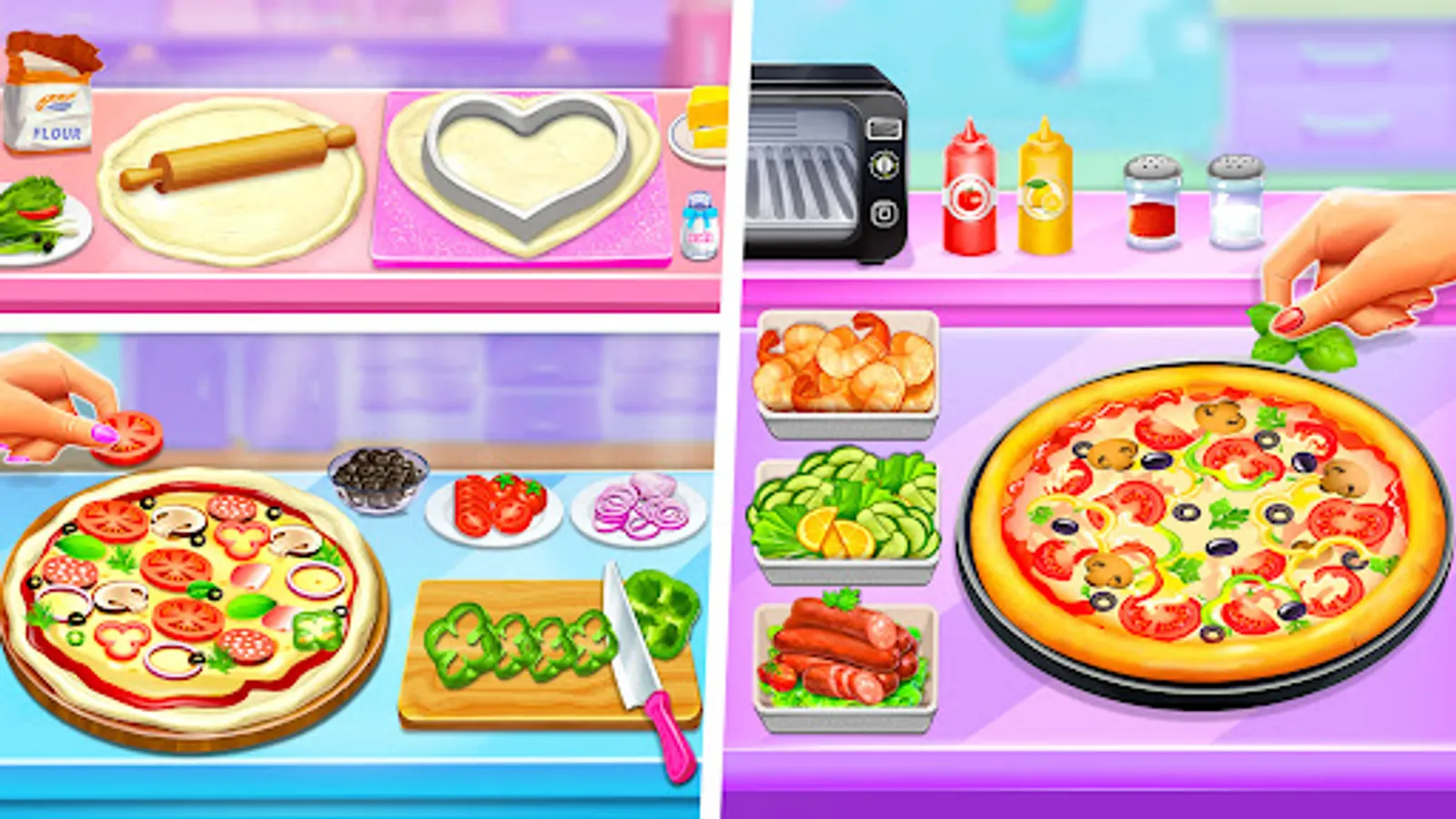 Do you love baking and Pizza Maker Games? Then what are you waiting for! Make the best mouth watering recipes in the baking kitchen. Get ready for the yummy experience! Get your kid busy for hours to make good fast food by playing exciting pizza maker games! Enjoy Pizza cooking games for girls.