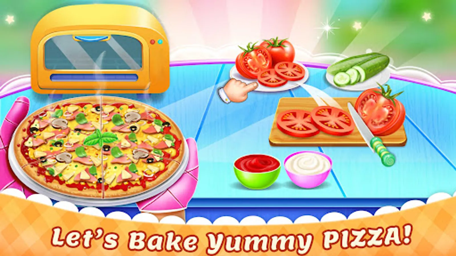 First you have to shop all the required ingredients for tasty snack cooking. Let’s make a dough for yummy pizza making by using all these ingredients. Cut the dough in different amazing shapes. Cut the vegetables in a beautiful manner for healthy topping and Cook dishes. Now your yummy fast food is ready to bake. Place the ready dough in the oven for some time. Then, select yummy topping from tons of delicious options and now tasty treat is ready to eat in pizza games.