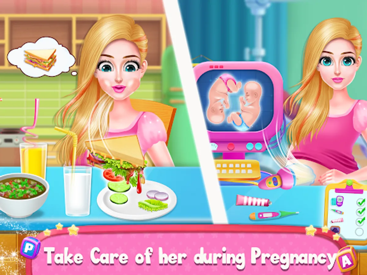 Don’t think too much and enter into the world of newborn birth twin baby daycare. In this mom and baby nursery, Start with the mother's health, feed her very healthy meals & fruits. Cook delicious soup for her, make fresh juice, and become a good pregnant mommy babysitter. You can enjoy the free pregnancy games by regular checkups and giving medicines to the mother.