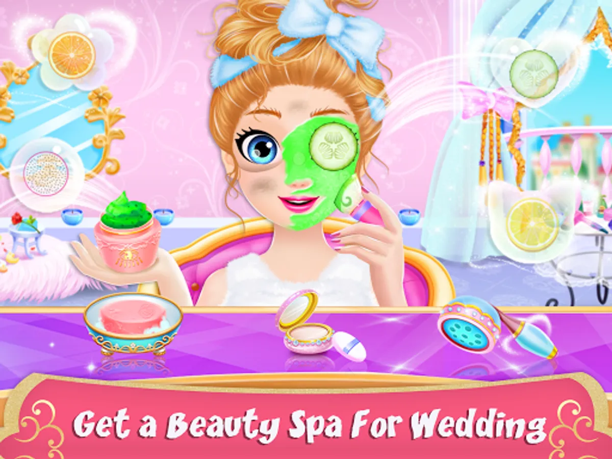 So you’re the princess’s wedding stylist.. First take the bride to an amazing spa makeup salon and give her a complete beauty treatment while applying different masks, creams and face washes on her face in the wedding salon. Be the expert fashion stylist and beautician and make her face glow and shine. Start the wedding preparations,use all your skills to give the best fashion makeover and prove yourself a good princess wedding planner in this dream wedding game.