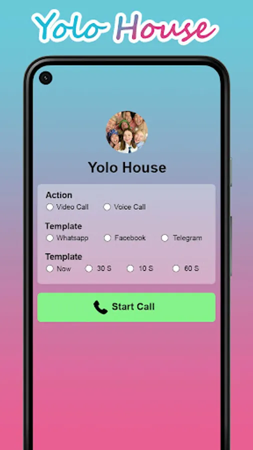 Prank your friend and amaze them with the call from Yolo House, set the timming and theme to get call from Yolo House
