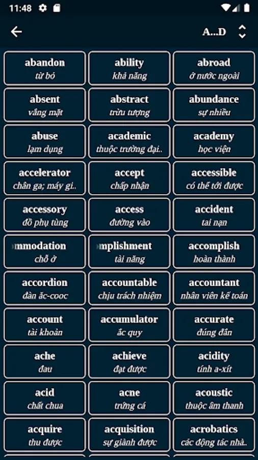 You can remember +5000 English words in many different ways, this is our way of doing it in the form of quizzes, asking questions and you will find English words that match Vietnamese meanings, currently supported with pictures. Photo.