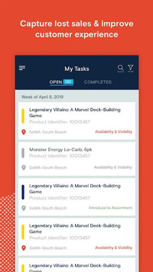 The app allows users to review all active recommendations specific to their store(s). The recommendations are broken into two areas: Open Tasks and Completed.