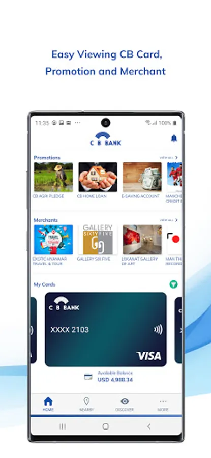 Your CB Bank cards are now a part of your phone. Access to all your cards, make payments, and take control with just one app.