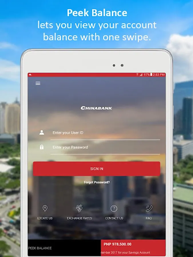 China Bank Mobile App is a FREE app that lets you access your China Bank account 24/7 using your smart phone.