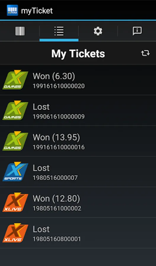 Just use the built in barcode scanner to add new tickets. Once added to your list of tickets you can easily keep up to date and check the state of your tickets anytime anywhere.
