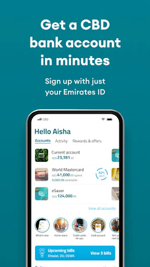 Manage your banking wherever you are with the No. 1 Bank in the UAE. Sign up in minutes with just your Emirates ID and get a Current Account, Credit Card, Quick Loan, Mortgage Pre-Approval and more in the App.