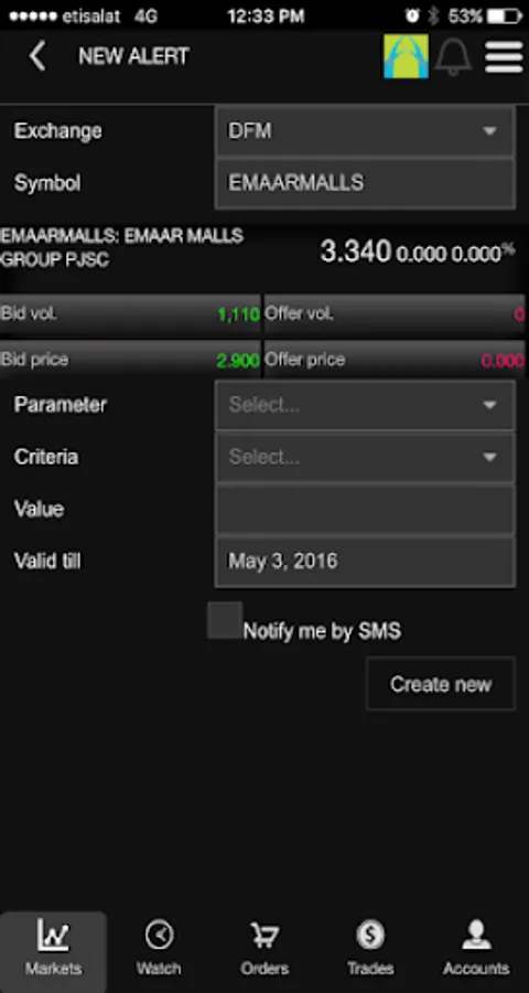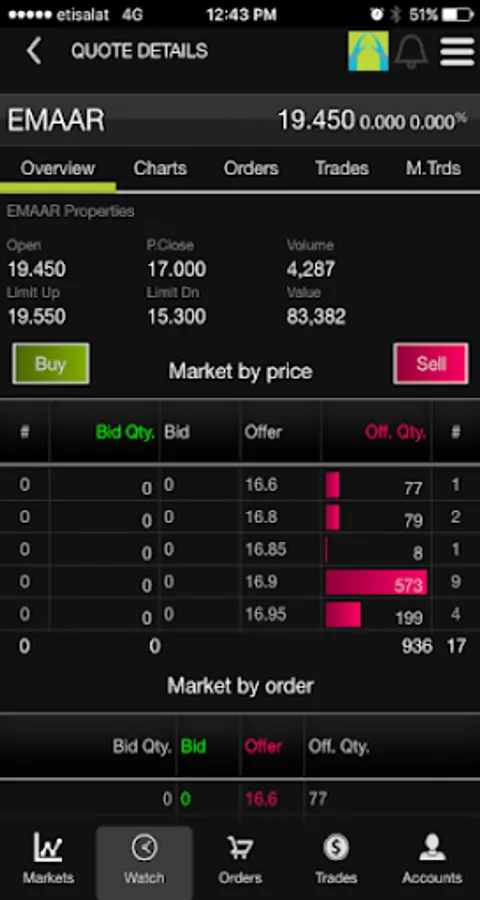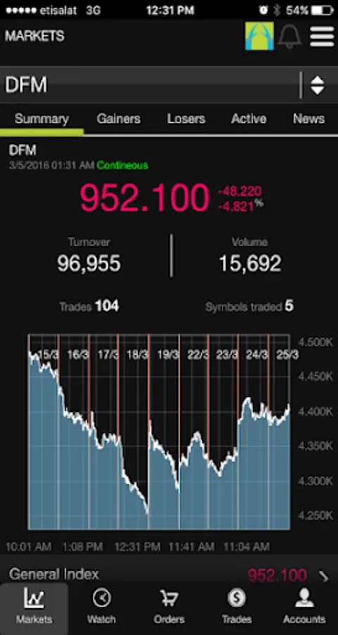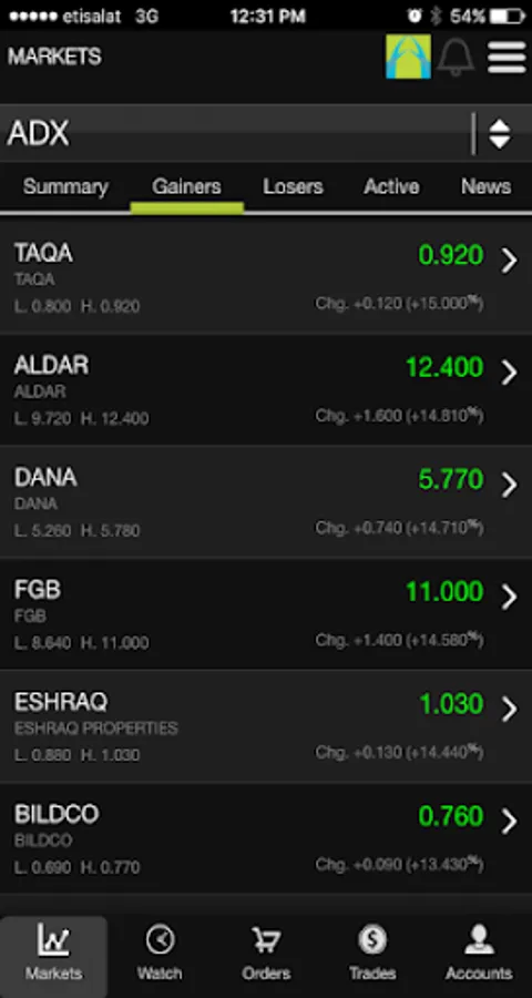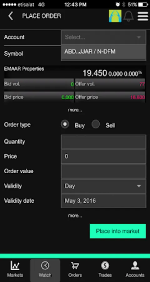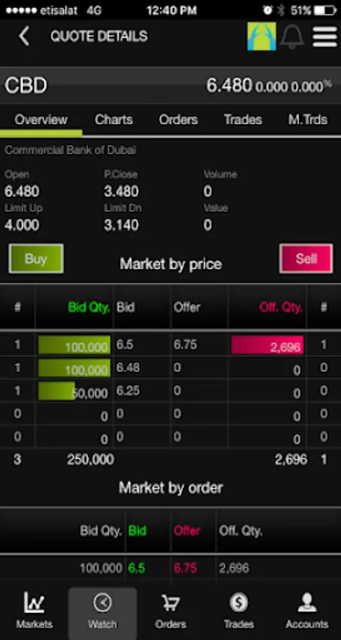 Commercial Bank of Dubai Financial Services (CBDFS) Mobile Trading Application for trading securities in Dubai Financial Market (DFM) and Abu Dhabi Exchange (ADX).