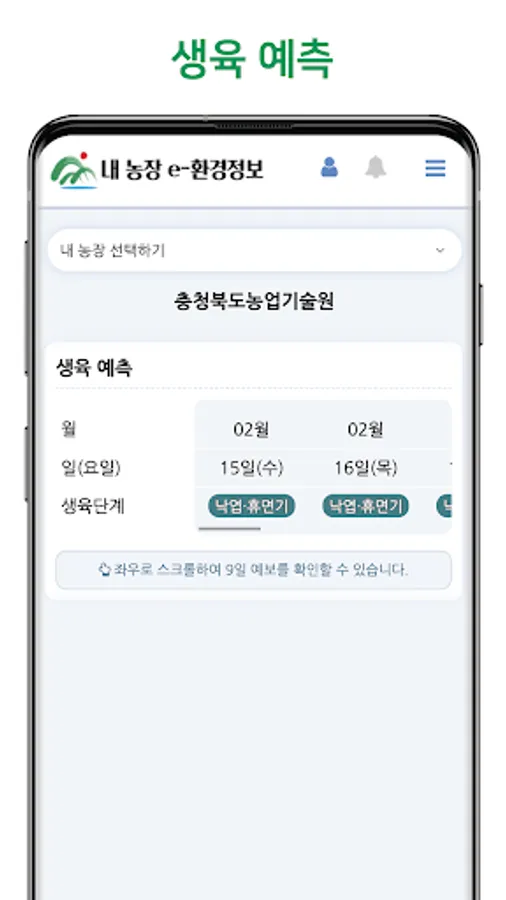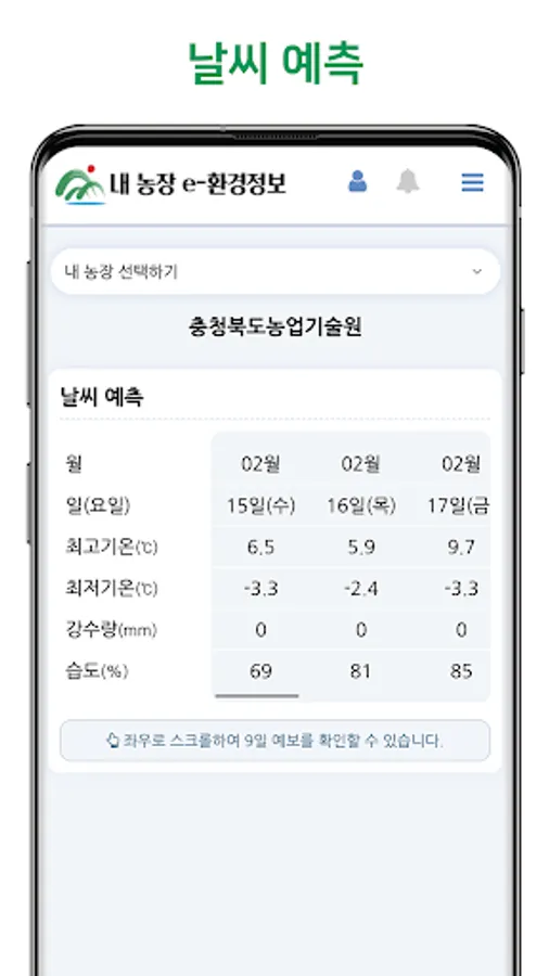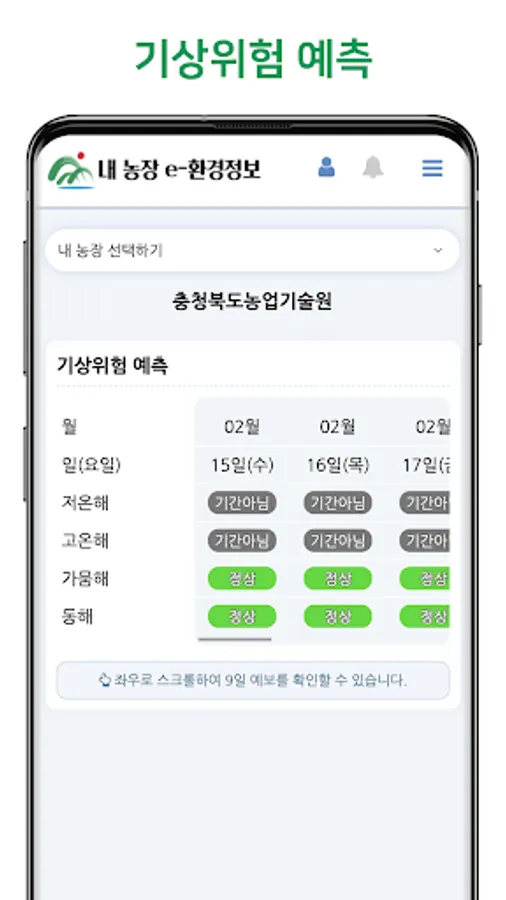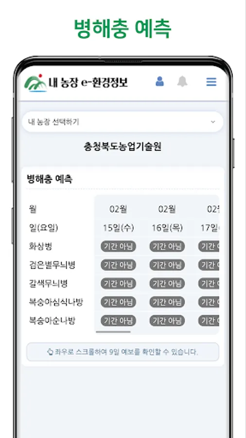 This service was developed for the purpose of providing agricultural weather information, growth stage prediction, disease risk prediction, and meteorological disaster risk prediction information to farmers in the Chungbuk region.
