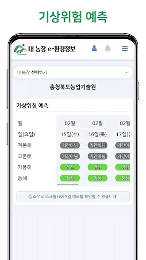 Agricultural weather information provides detailed weekly weather forecasts for farm locations, and predicts the growth of crops, the risk of diseases and pests, and the risk of meteorological disasters using weather forecasts, and delivers risk forecasts in advance.