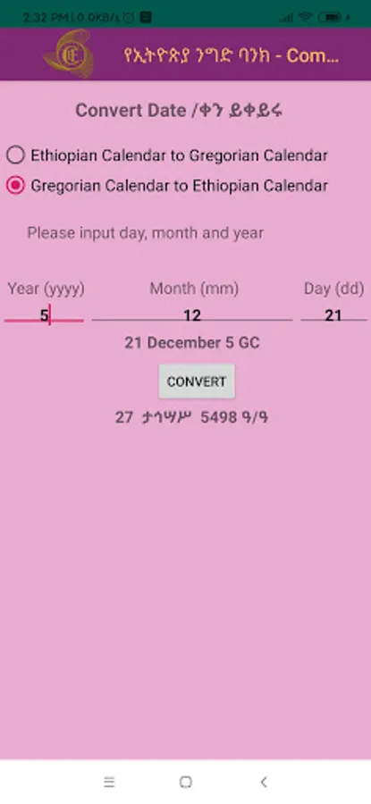 4.It lets you convert from Gregorian calendar to Ethiopian calendar