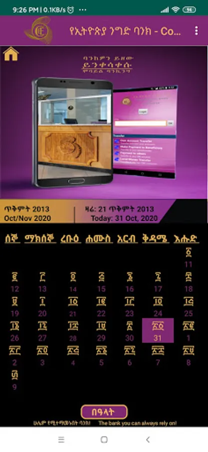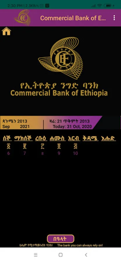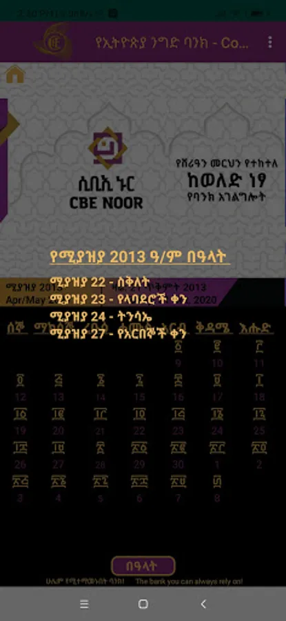 This application shows Ethiopian calendar combined with Gregorian calendar and it has the following features