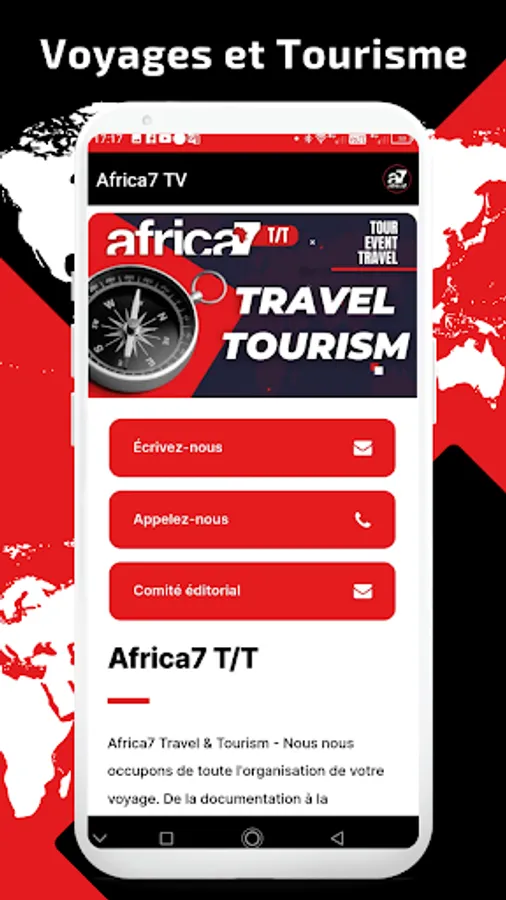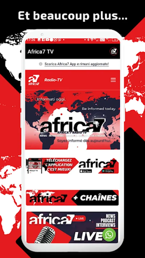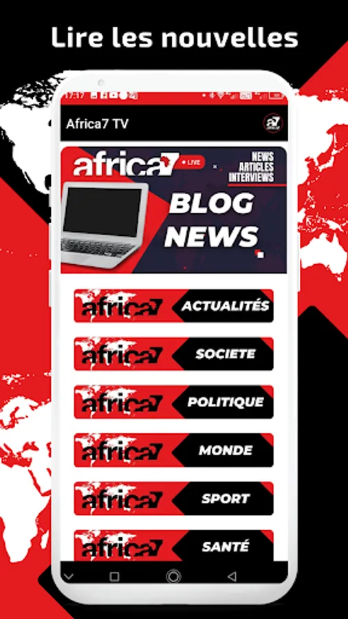 Africa7 is a general Senegalese television channel covering education, culture and sport. It is aimed at a French-speaking, English-speaking and Italian-speaking population; young people and women from all over Africa and its diaspora. Africa7 offers content that combines modernity, independence and accessibility. Africa7TV is 100% digital, broadcasts information worldwide with a multimedia platform with BLOG-RADIO-TV-MOBILE channels.