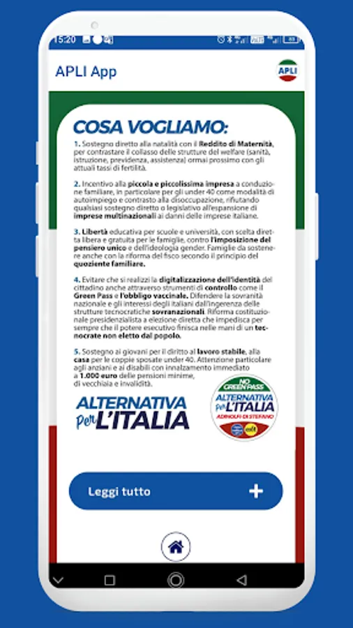 Download APLI App! You will be able to get in direct contact with the candidates of Alternativa Per L 'Italia!