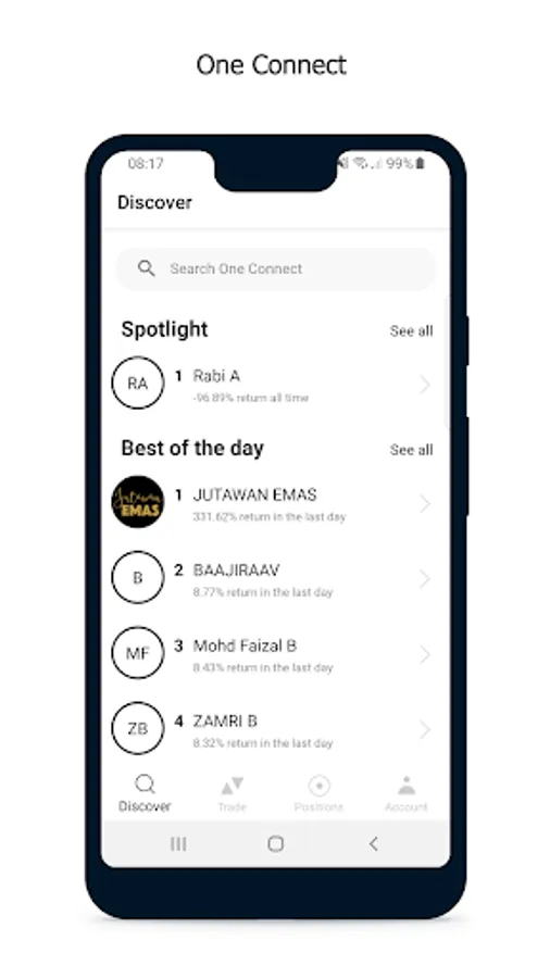One Connect lets you execute trades, copy experts and message other investors all on one platform. Chat, trade, copy, earn, all on the go. We connect you to the traders that matter.