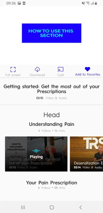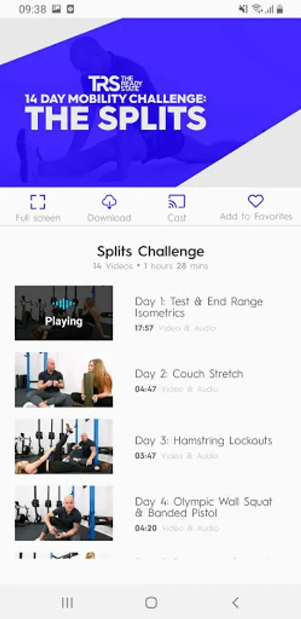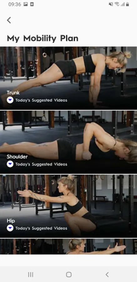 • Select a personalized pre- or post-workout mobility video from a list of over four dozen sports, movements, and exercises.