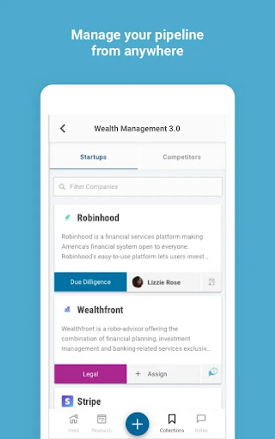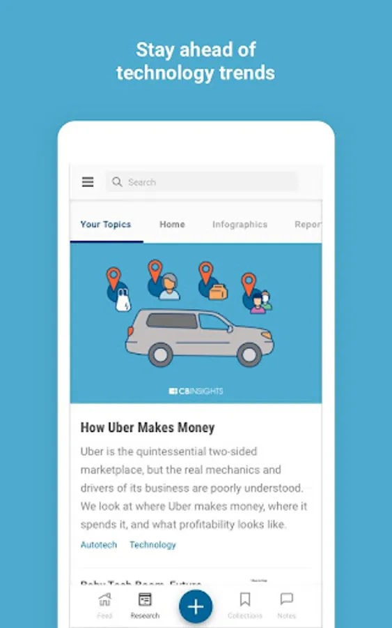 CB Insights mobile app ensures you are always prepared for meetings, presentations or conferences by putting the power of our research team, data and visualizations in your pocket.