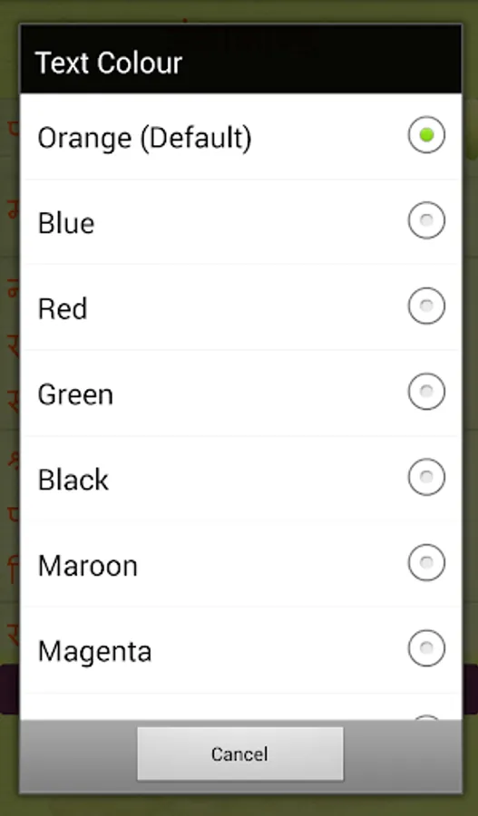 You can change the text color of reading page as per your requirement. Just go to Options Menu and choose "Change Text Colour". You can select the Text colours from a list of available colours. Just select and hit Save. The colour of reading Text will change as per your choice. (Applicable only in Detail Screen).