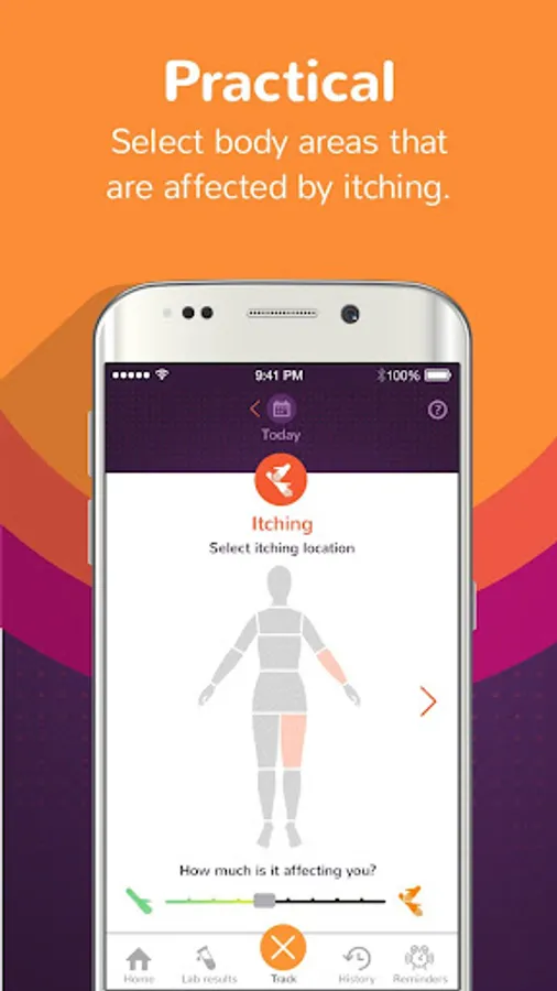 - Symptom trackers for itching, mood, sleep, and energy level