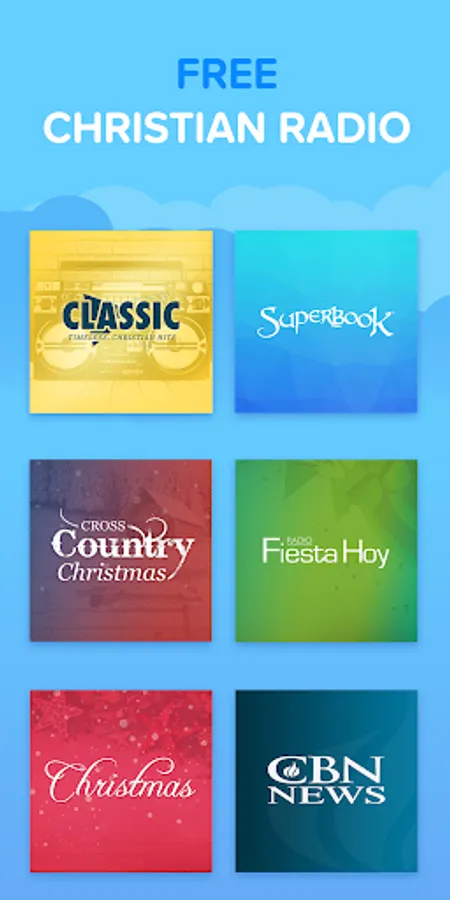 It’s one free app with 12 different stations to choose from -- Praise, Instrumental, Cross Country, Contemporary, Gospel, Southern Gospel, Classic Christian, Spanish, Superbook, Christmas and CBN News.