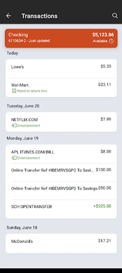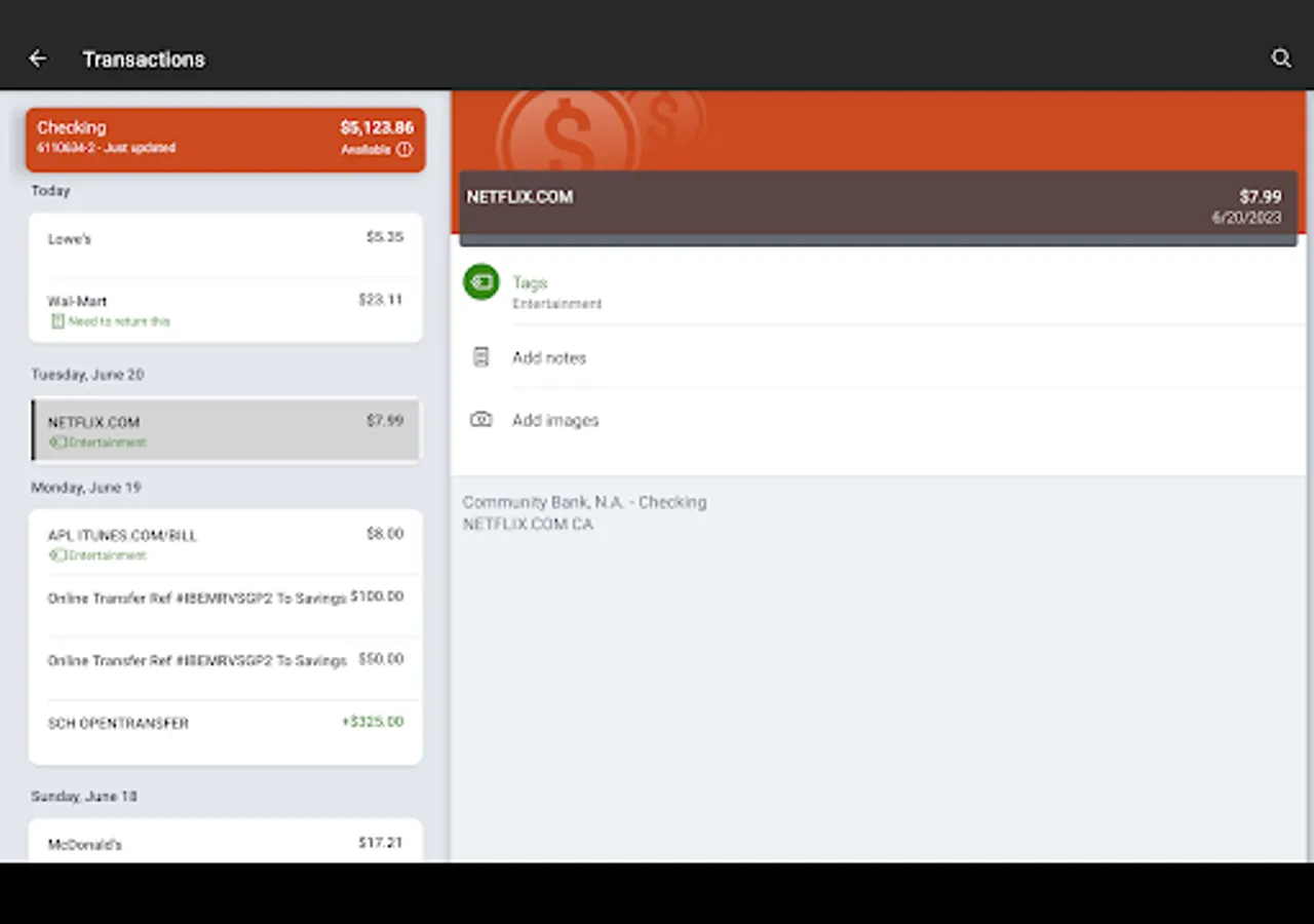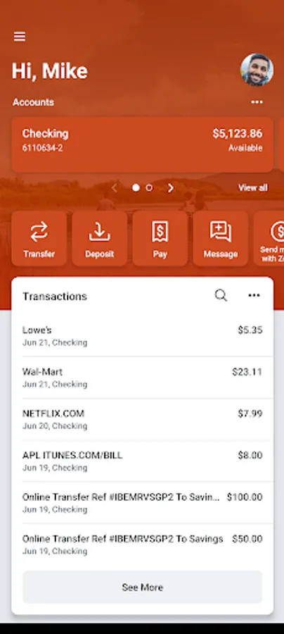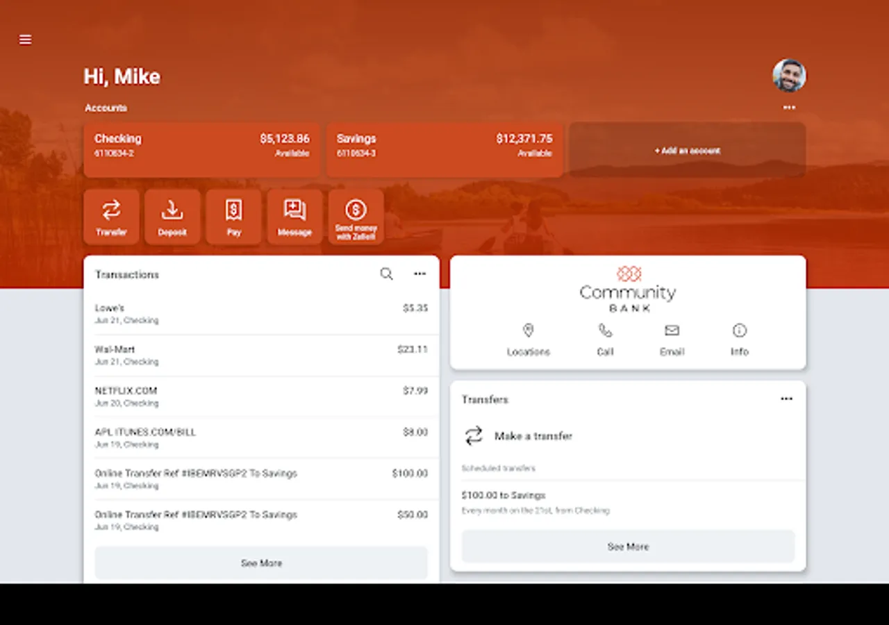 • View transactions and account balances for checking, savings, loans and lines of credit