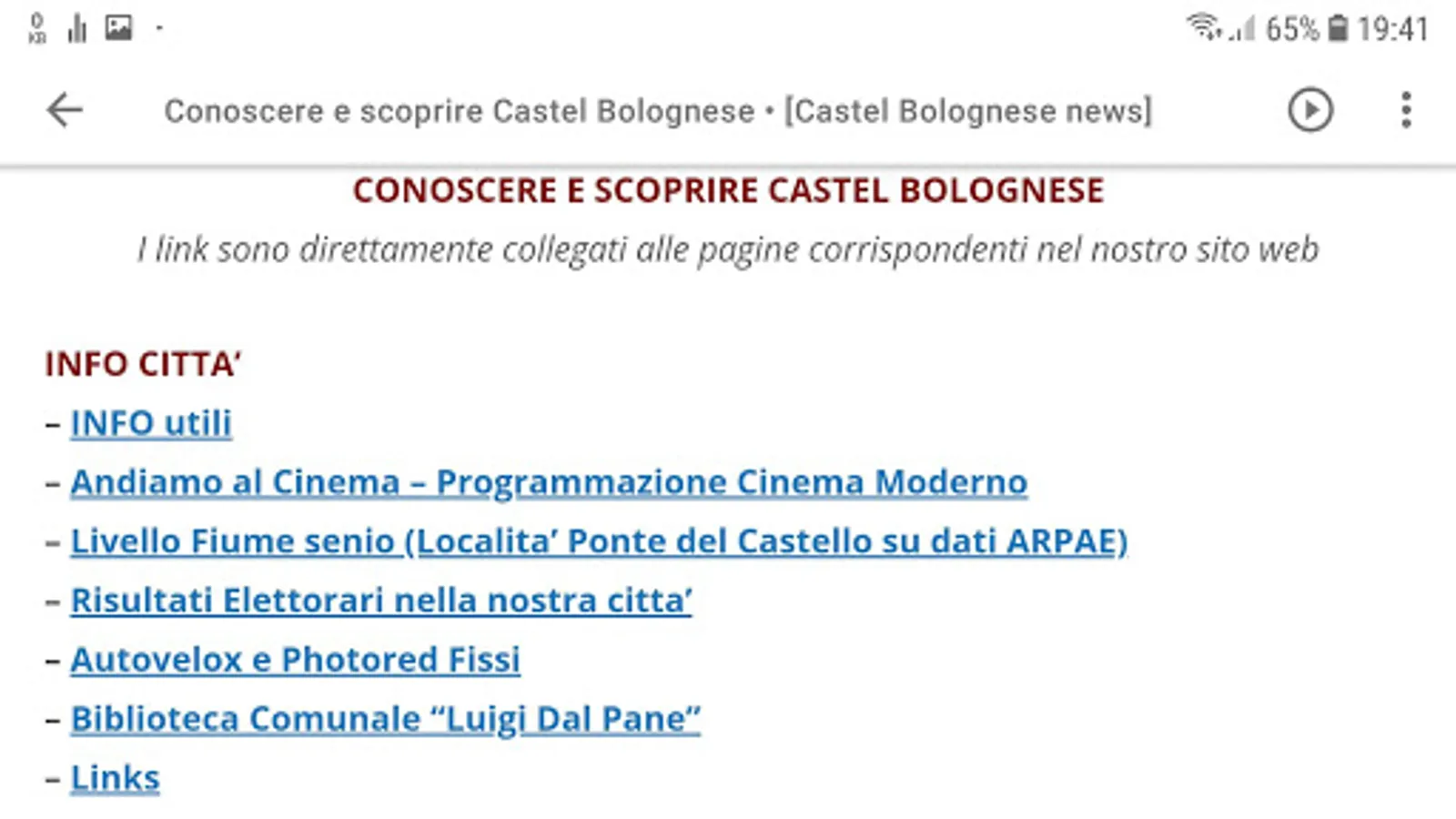 With the APP, you can always stay up to date with the news we publish on the site, plus weather forecasts for our city, links to the information pages, see the comments on the news published, and always have the city map available to consult and not only.