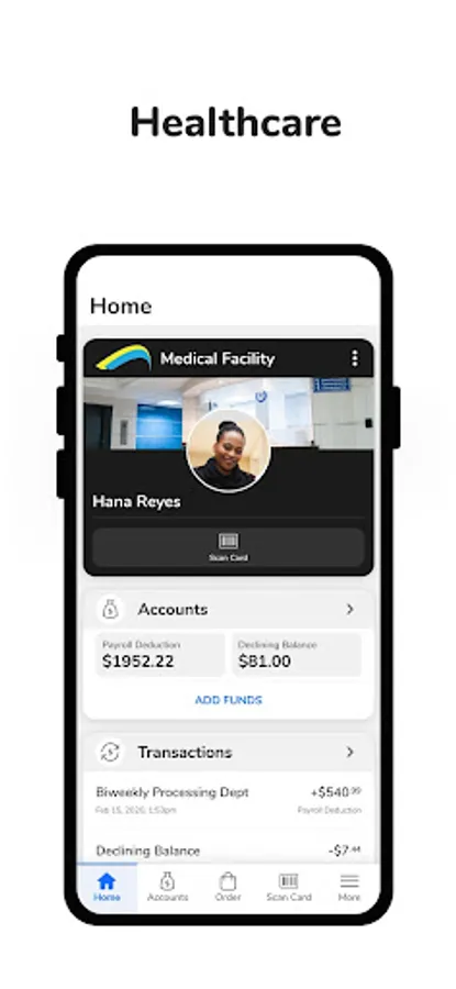 For healthcare: Add your badge to your mobile phone. Download GET to opt into payroll deduction, manage funds, view and make purchases, report a lost or stolen ID card, and place online food orders.