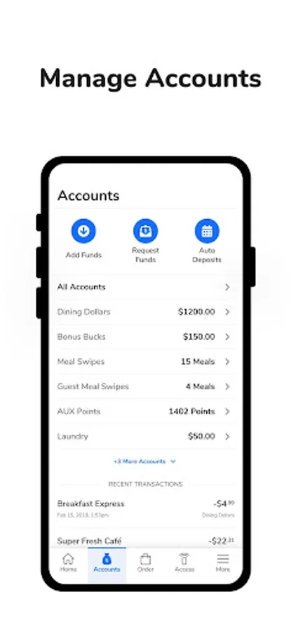 For colleges and universities: One app does it all! GET allows you to manage funds, make purchases, order food, make dining reservations, and earn rewards. You can also use NFC access to open doors, purchase from vending machines, or pay for your laundry. You can use GET just like you use a plastic ID card.
