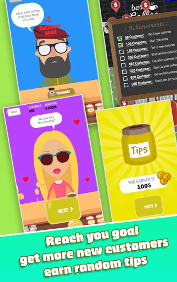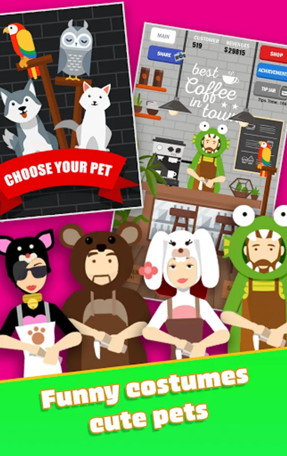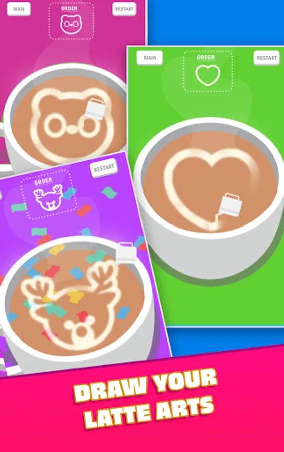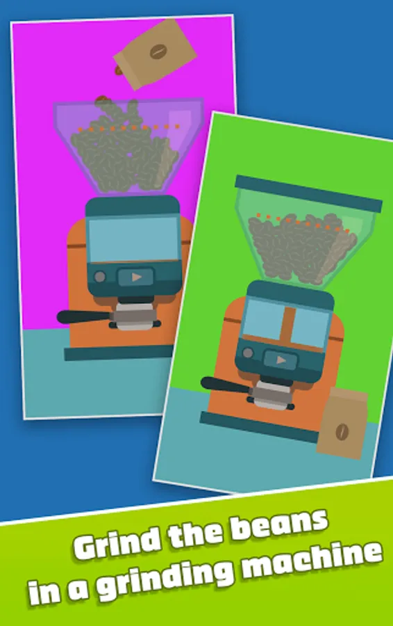 Learn real coffee recipes when you play. Start your coffee shop and grow it your way. Coffee bean grind in grinding machine. Drawing latte art, take away coffees, writing customer names, wash your dishes, new costumes, pets. Gain new skills and new customers by unlocking success.