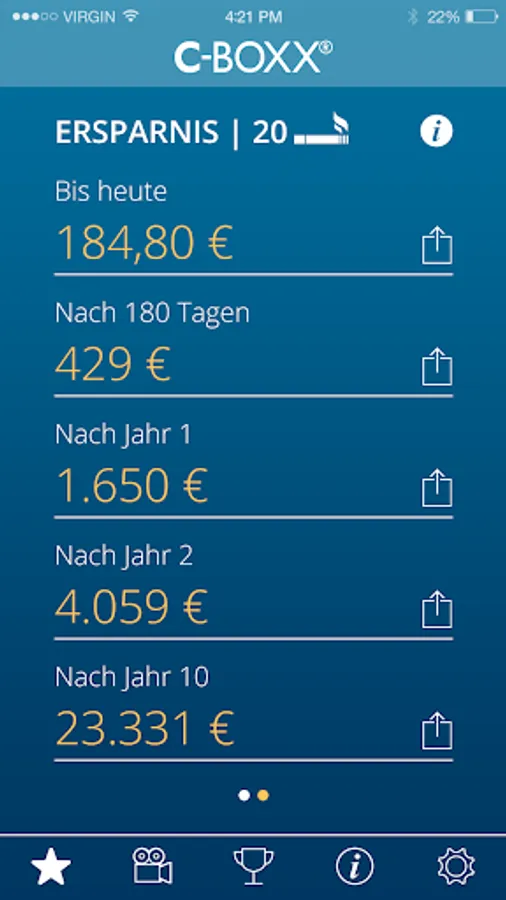 So you have the full list of success on your way to smoking. In addition to the savings calculator, the C-BOXX App offers you further motivating comparison and success evaluations.
