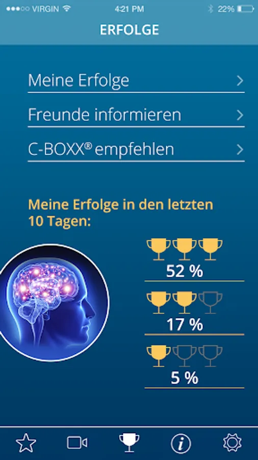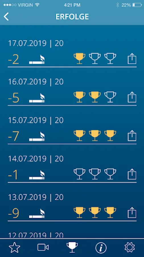 Your daily success rewards the app with golden trophies.