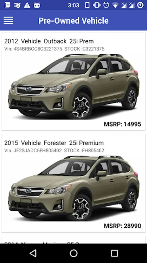 * Car Inventory Listing