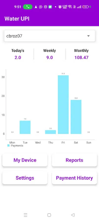 2. Can see total revenue generated by water vending machine on the slots of daily, weekly, and monthly