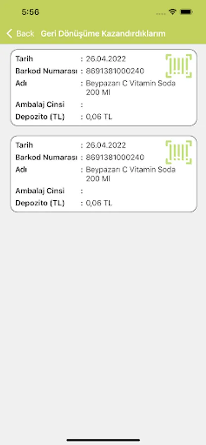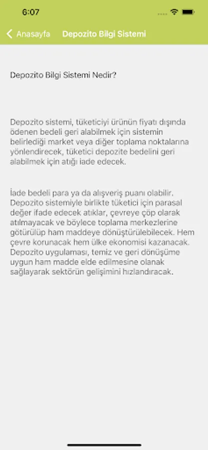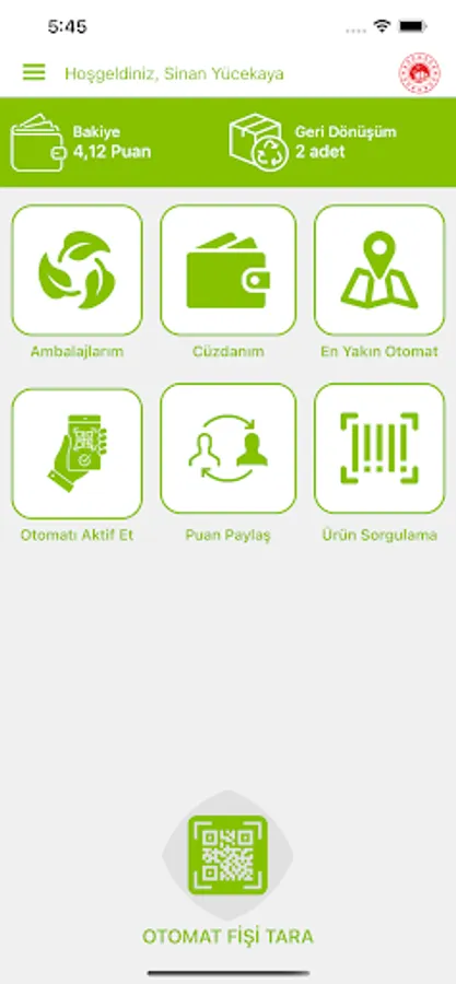 Ministry of Environment, Urbanization and Climate Change Deposit Information System application. It has features such as verifying and using the receipts received from the deposit return machines, earning points, using and sharing.
