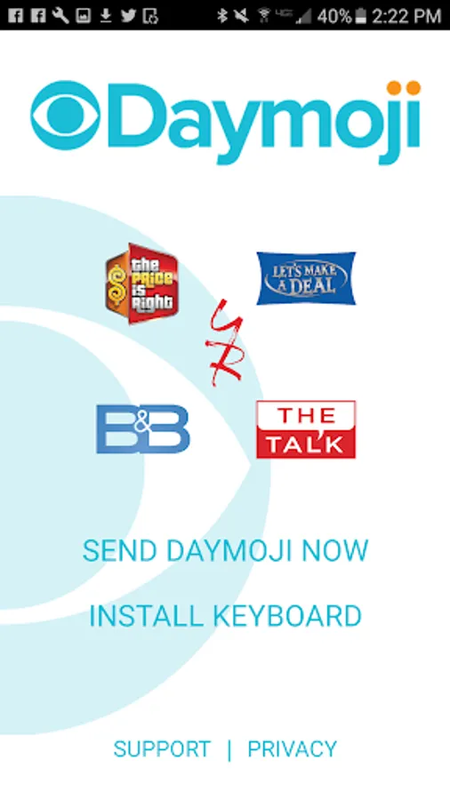 CBS Daytime is celebrating 30 years at #1 with our fun and playful emoji app, Daymoji! Enjoy sending exclusive stickers and animations from your favorite shows right from the app or using your keyboard. New Daymojis for The Price Is Right, The Young and the Restless, The Bold and the Beautiful, Lets Make A Deal and The Talk will be added so install and start celebrating with Daymoji today!