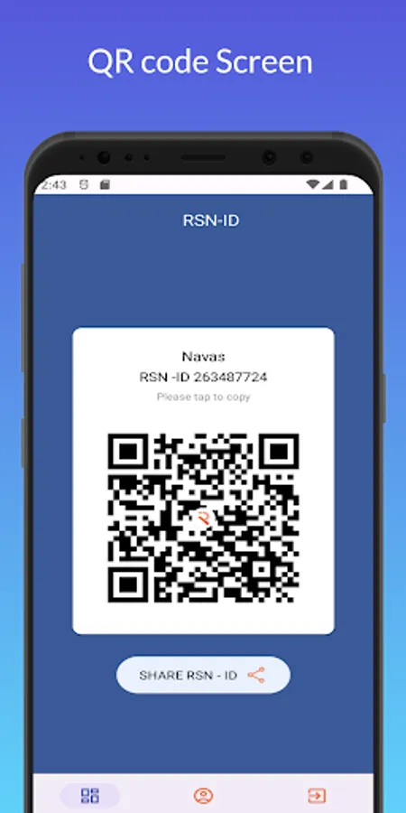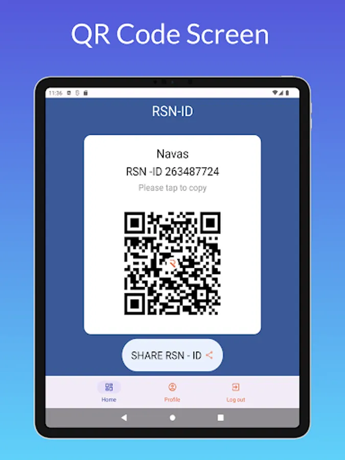 RSN Id app generates the QR code which is configured with our RSN Id so as to share it wherever and whenever necessary.