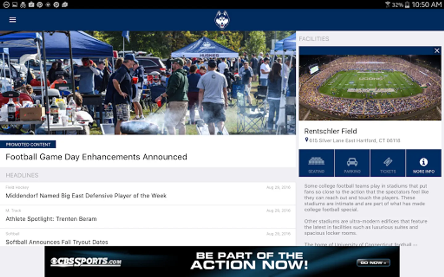 The official UConn Huskies Gameday LIVE app is a must-have for fans headed to campus or following the Huskies from afar. With interactive social media, and all the scores and stats surrounding the game, the UConn Huskies Gameday LIVE app covers it all!