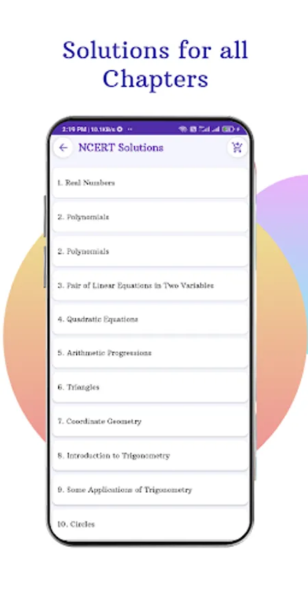 This app contains answers to all the chapters included in the Class 10 NCERT Maths Book: