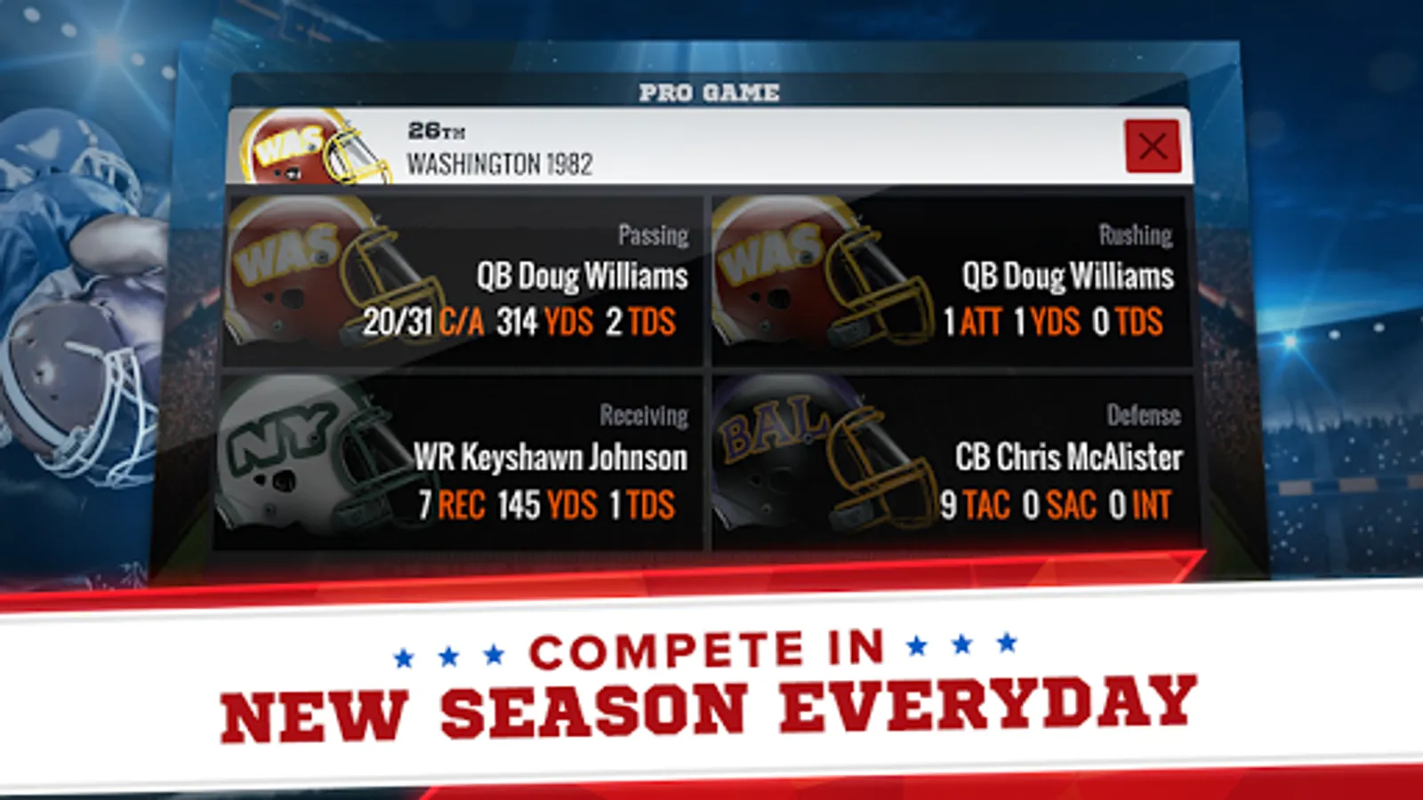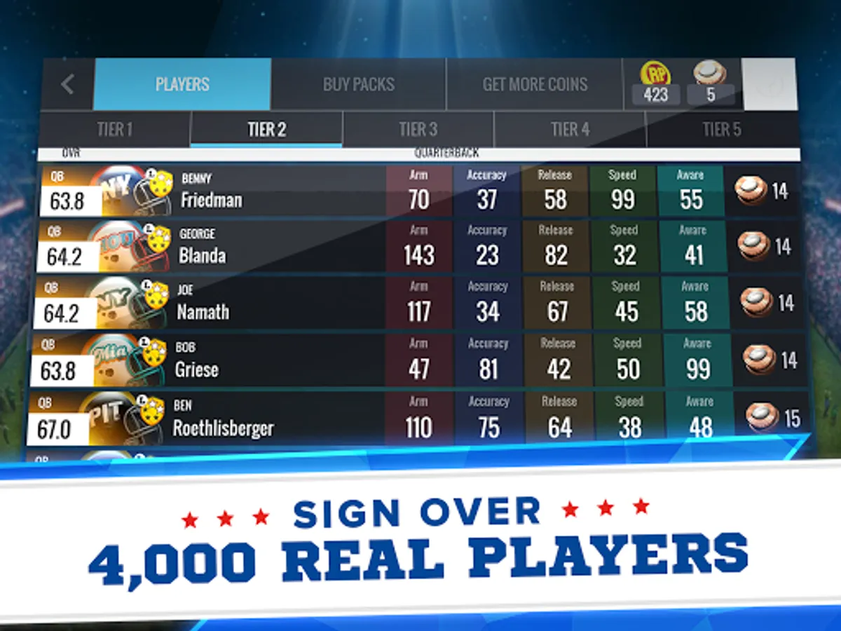 Fill your roster with the most memorable players in NFL football history! Sign your favorite QB, RB, and LB from today’s teams… sign your favorite WR, DE and TE from classic teams… sign players that match your playbook strength… sign any player you want!