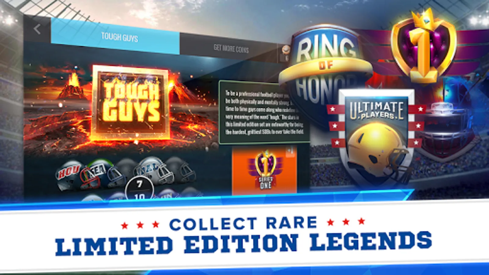 Be the best GM in football by signing the best players in football. Combine gridiron legends with monthly Limited Edition players to unlock Ultimate Players – the most fiercely dominating football players ever scouted! Pick up an all-time QB, WR, LB, and RB and build a fantasy roster that can hold its own against the greatest teams in NFL history!