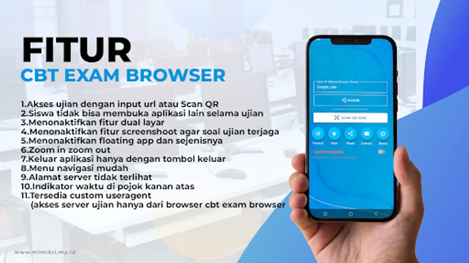 With the CBT Exam Browser PRO application, students will focus more on taking the exam and minimizing cheating. In this version there are no advertisements, students are only asked to buy once and are student-friendly.