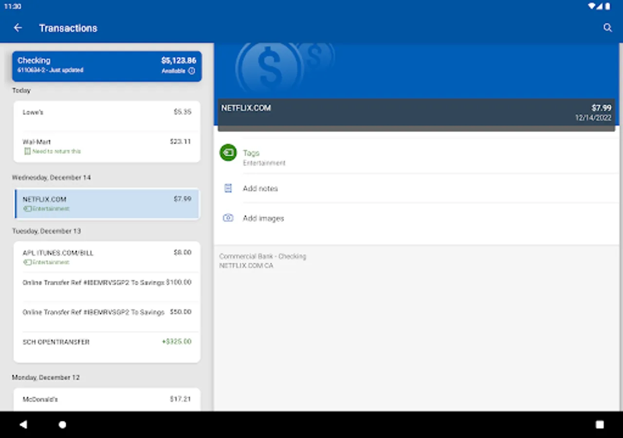 Keep your transactions organized by allowing you to add tags, notes, and photos of receipts and checks.