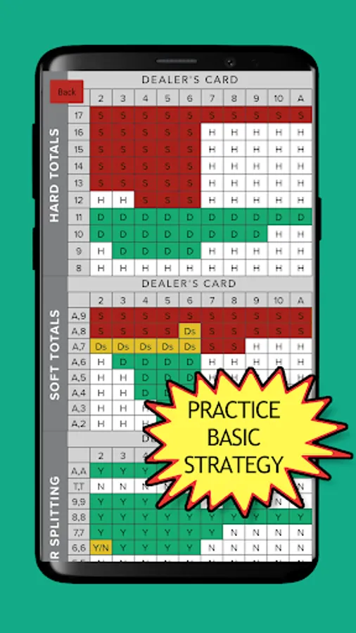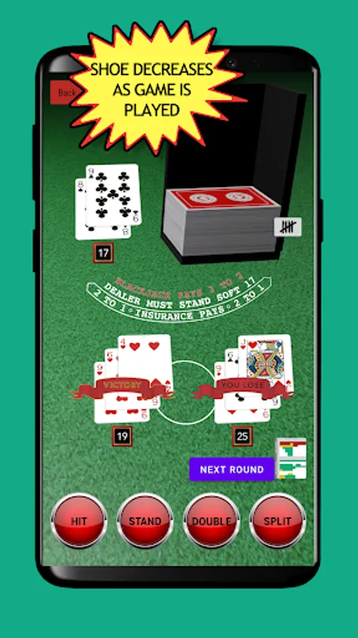 -Practice game modes which allow you to practice soft totals, hard totals, or splits.